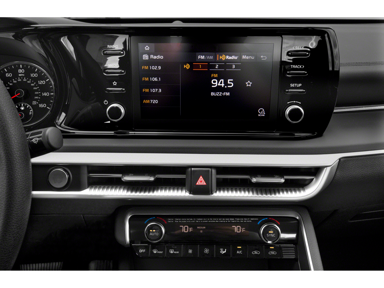 - Radio w/Seek-Scan, Clock, Speed Compensated Volume Control, Steering Wheel Controls, Voice Activation and Radio Data System