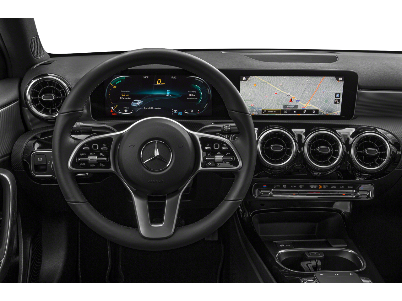 4-Wheel Disc Brakes, 8 Speakers, ABS brakes, Air Conditioning, Alloy wheels, AM/FM radio, Apple CarPlay®/Android Auto®, Automatic temperature control, Brake assist, Bumpers: body-color, Child-Seat-Sensing Airbag, Delay-off headlights, Driver door bin, Driver vanity mirror, Dual front impact airbags, Dual front side impact airbags, Electronic Stability Control, Emergency communication system: Mercedes-Benz Emergency Call Service, Exterior Parking Camera Rear, Four wheel independent suspension, Front anti-roll bar, Front Bucket Seats, Front Center Armrest, Front dual zone A/C, Front reading lights, Fully automatic headlights, Heated door mirrors, Illuminated entry, Knee airbag, Low tire pressure warning, Memory seat, Occupant sensing airbag, Outside temperature display, Overhead airbag, Overhead console, Panic alarm, Passenger door bin, Passenger vanity mirror, Power door mirrors, Power driver seat, Power moonroof: Panorama, Power passenger seat, Power steering, Power windows, Premium audio system: MBUX, Radio data system, Rain sensing wipers, Rear anti-roll bar, Rear reading lights, Rear seat center armrest, Rear window defroster, Remote keyless entry, Security system, Speed control, Speed-sensing steering, Split folding rear seat, Steering wheel mounted audio controls, Tachometer, Telescoping steering wheel, Tilt steering wheel, Traction control, Trip computer, Turn signal indicator mirrors, and Variably intermittent wipers.